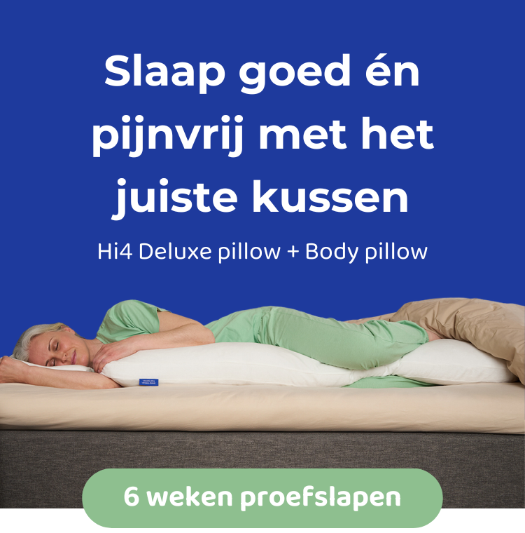 Een nieuw kussen is altijd even wennen. Zeker met ons unieke gelaagde Hi4 kussen kan het een paar nachten duren voordat jij de ideale hoogte hebt gevonden. Maar als je eenmaal goed ligt, zul je vast weer snel heerlijk en klachtenvrij slapen.